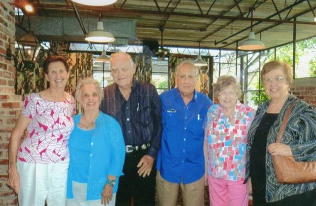 These smiling people are Jane Rupe (Love), Gerry (Guly) and Wayne Gabehart, Rucy Krisch, Ann Johnston (MacEwan), and Jean Tate (Pearce).