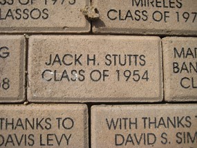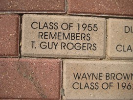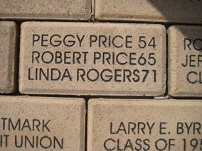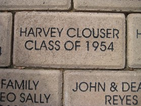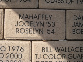 Below are the bricks sponsored by our class members. In addition, we saw bricks honoring T. Guy, the Lassos, teacher Jean Longwith and librarian, Alice Lovelace, and various others. About 250 bricks are waiting to be put in place at the base of the flagpole, but the contractor has stipulated 300 are required at a time. If you have not thought of giving a brick in honor of yourself or someone else, it is for a good cause. I was ashamed to see a brick with my deceased brother’s name on it—ashamed because it was donated by a friend and not by me. I just did not think of it.