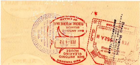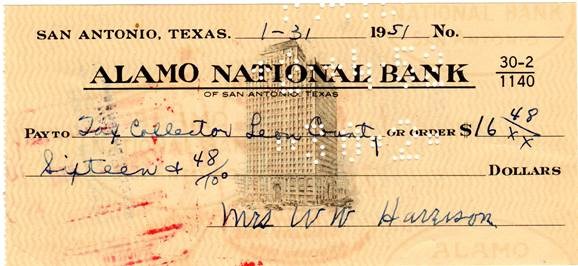 Recently, I was sorting through some very old papers and came across cancelled checks that my grandmother had signed to pay some property taxes in East Texas. Here is what the check looked like: