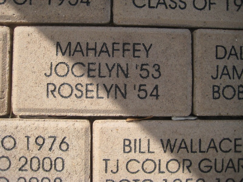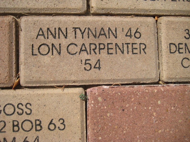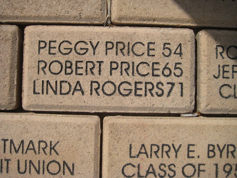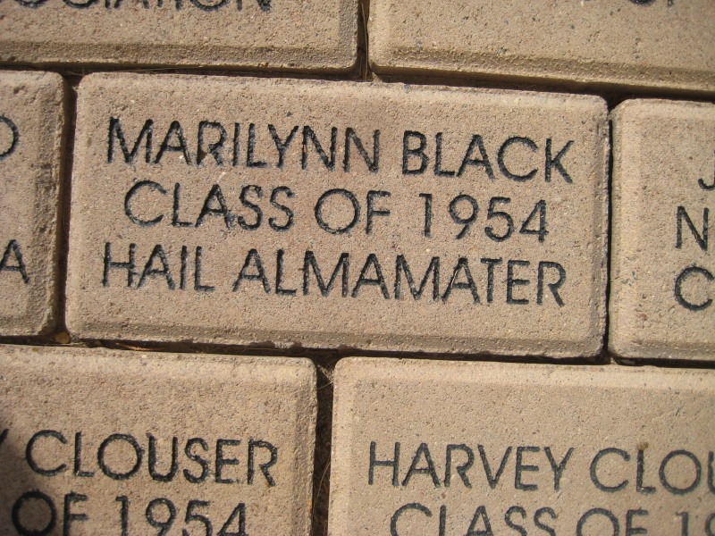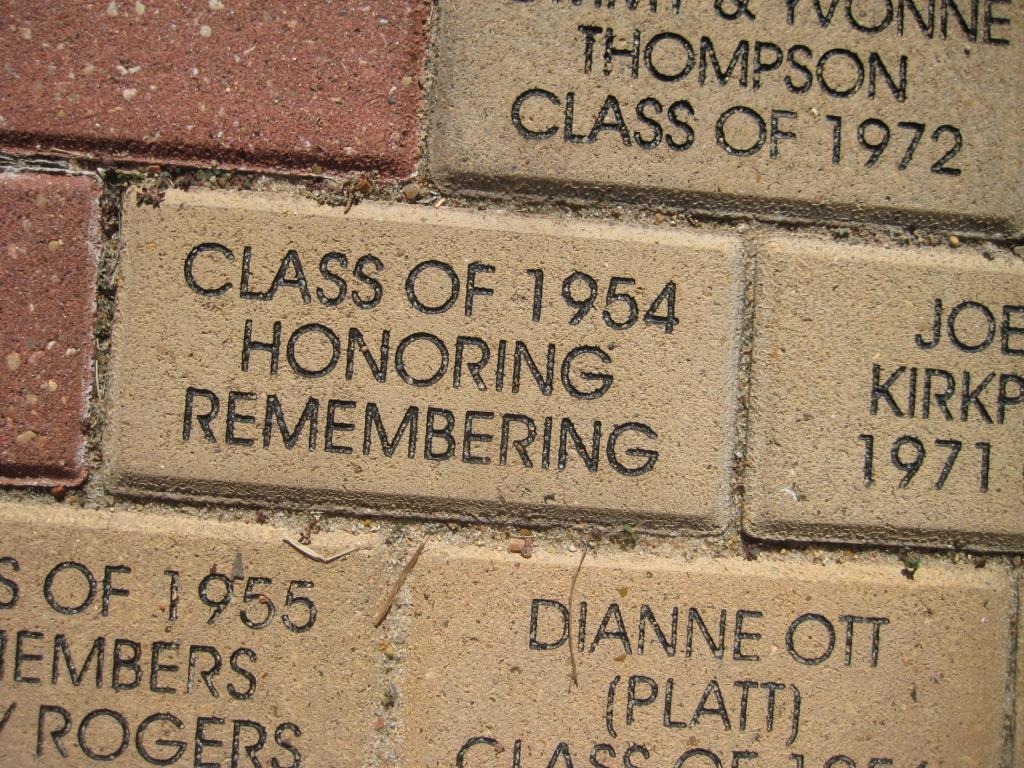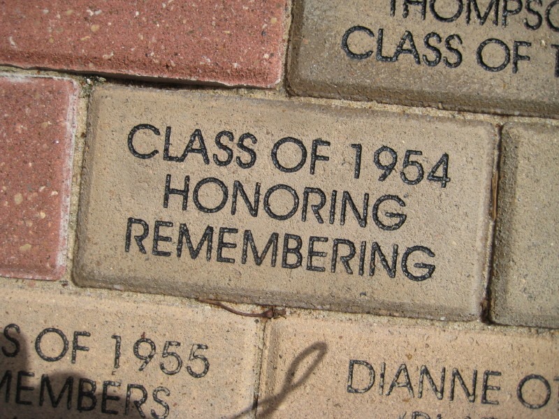 All orders for bricks placed by September of last year were put in place in December. Below are photos of those laid to date. If you ordered and do not see your brick, please let me know. The bricks are laid in no particular order…they ignored my suggestion to place bricks together by class, even though I offered to sort the bricks for them. Actually, that is not especially practical, as any number of siblings from several different class years ordered on brick for all of them.