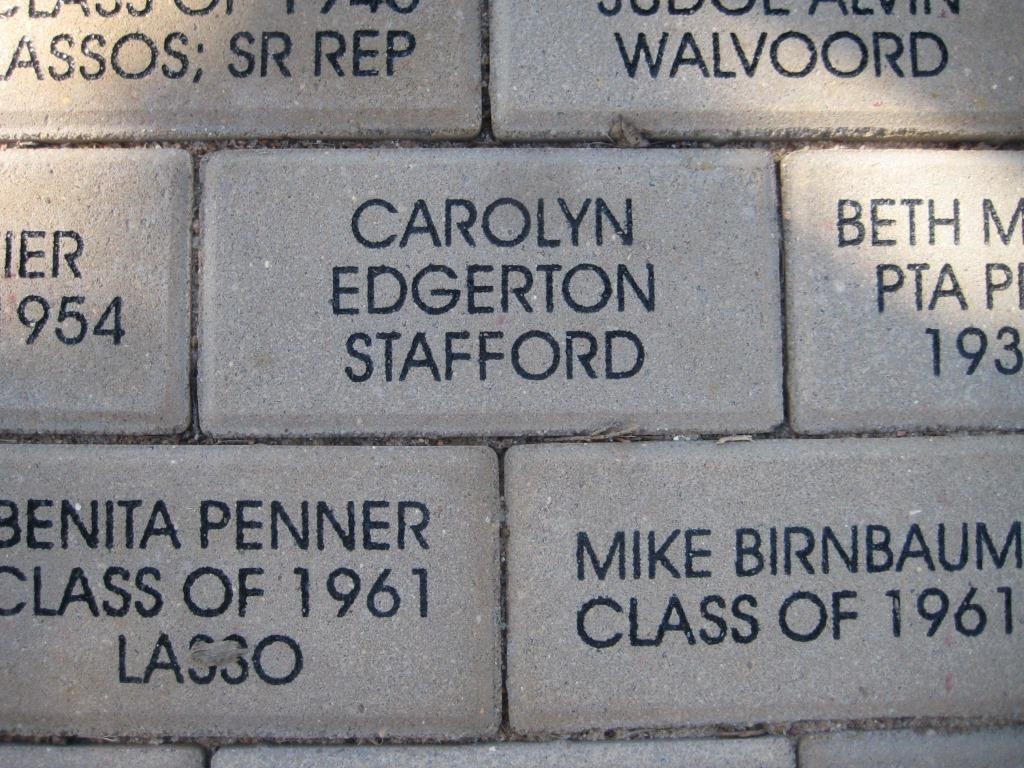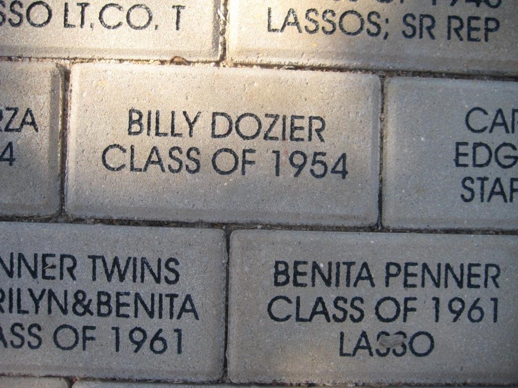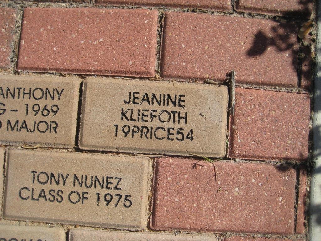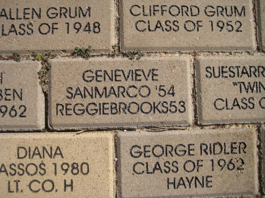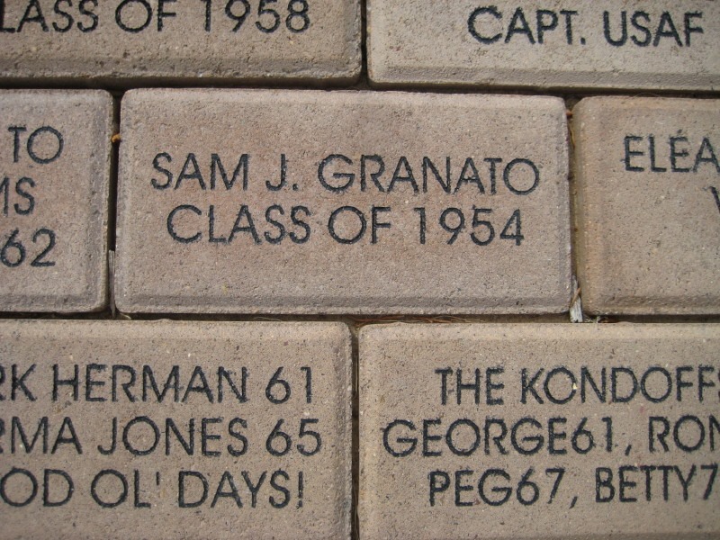 All orders for bricks placed by September of last year were put in place in December. Below are photos of those laid to date. If you ordered and do not see your brick, please let me know. The bricks are laid in no particular order…they ignored my suggestion to place bricks together by class, even though I offered to sort the bricks for them. Actually, that is not especially practical, as any number of siblings from several different class years ordered on brick for all of them.