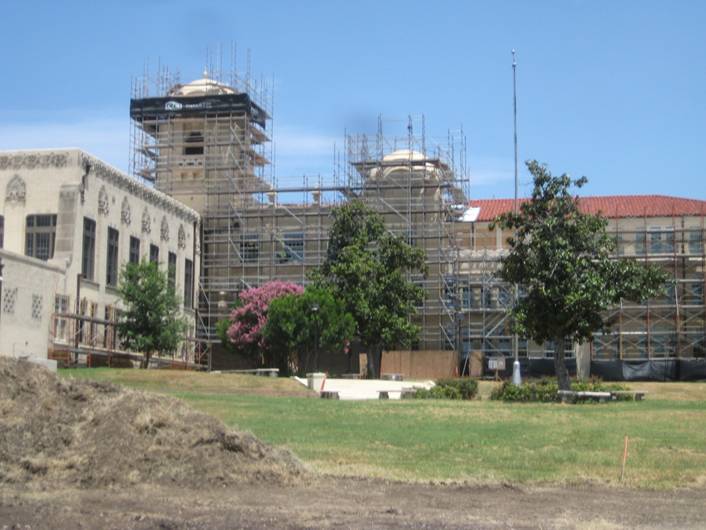 Scaffolding: I recently drove down Donaldson Avenue and saw scaffolding wrapped around the tower, pictured below. I suppose that is part of the $50 million bond issue passed in two segments a few years ago.